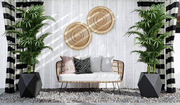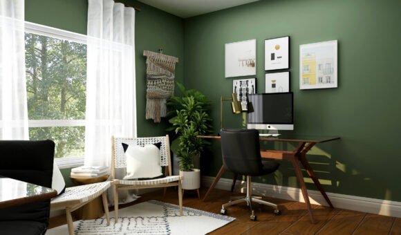 Create a Modern Bohemian Home Office with plants and geometric prints
